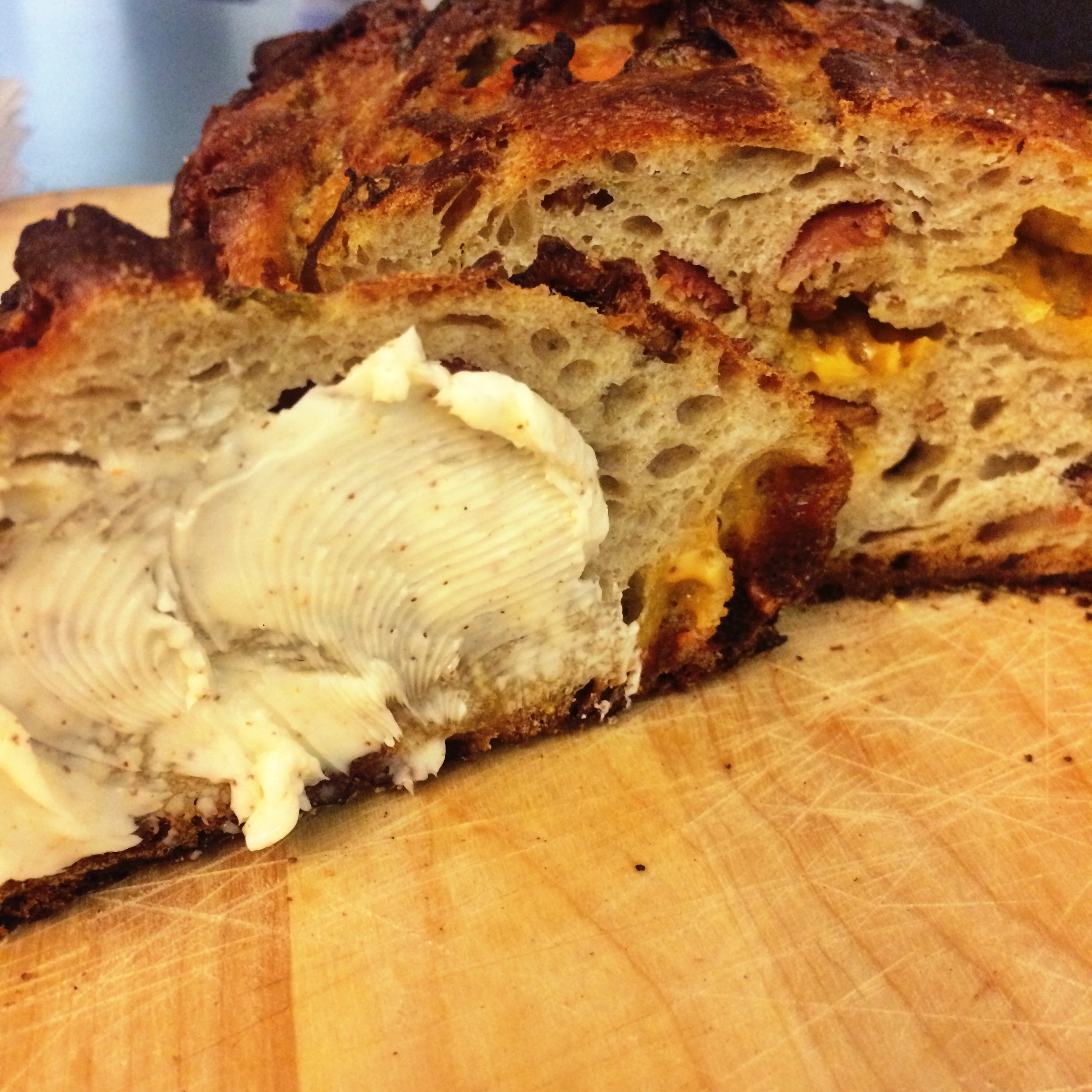 This one goes out to Dave DeRoma. Bacon, Jalapeno, and Cheddar Bread.