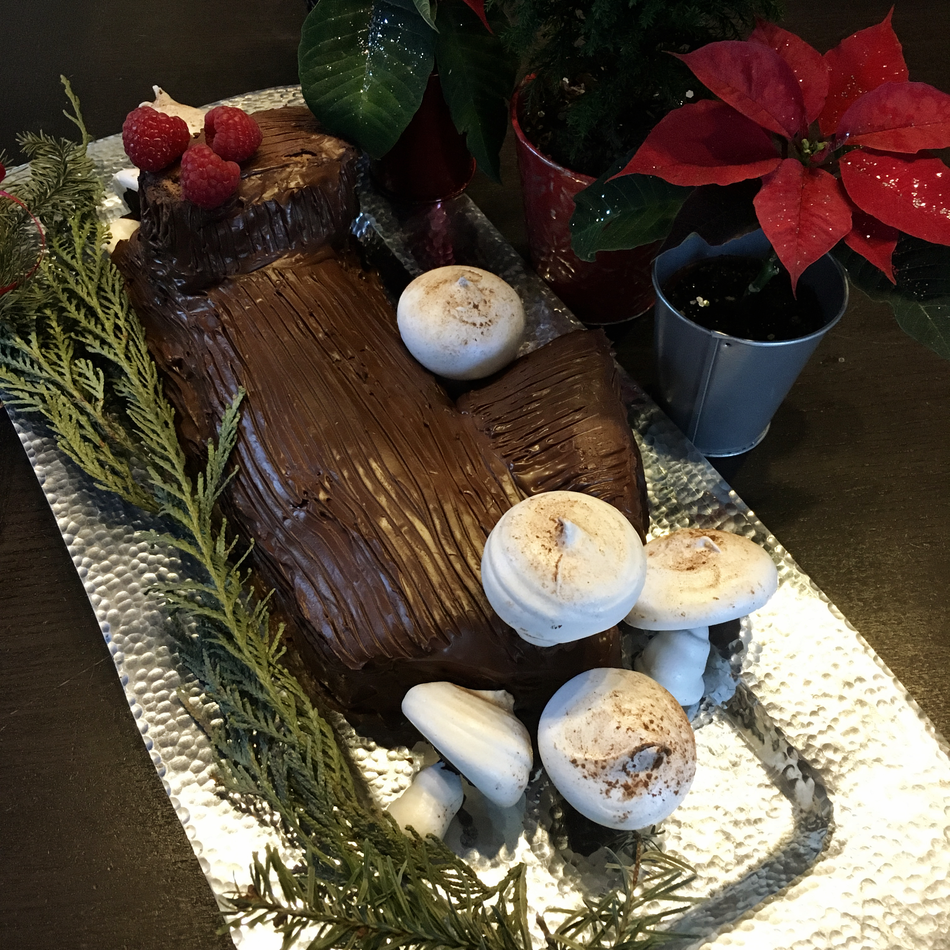 Make chocolate genoise and mousse, ganache icing, and meringue mushrooms.