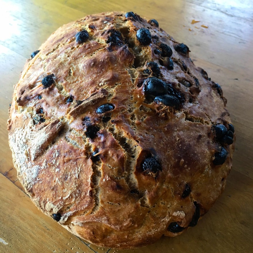 Mix dry ingredients together and then add water slowly until dough is a little sticky. Fold in raisins. Cover and leave overnight.
