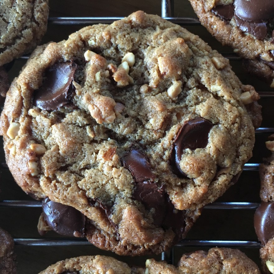 Amazing Gluten free (if your baking soda is) peanut butter chocolate chip cookies.