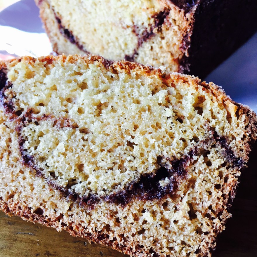 Grease the bottom only of a 9×5-in. loaf pan. Pour half of the batter into pan; sprinkle with half the cinnamon-sugar. Carefully spread with remaining batter and sprinkle with remaining cinnamon-sugar; cut through batter with a knife to swirl.