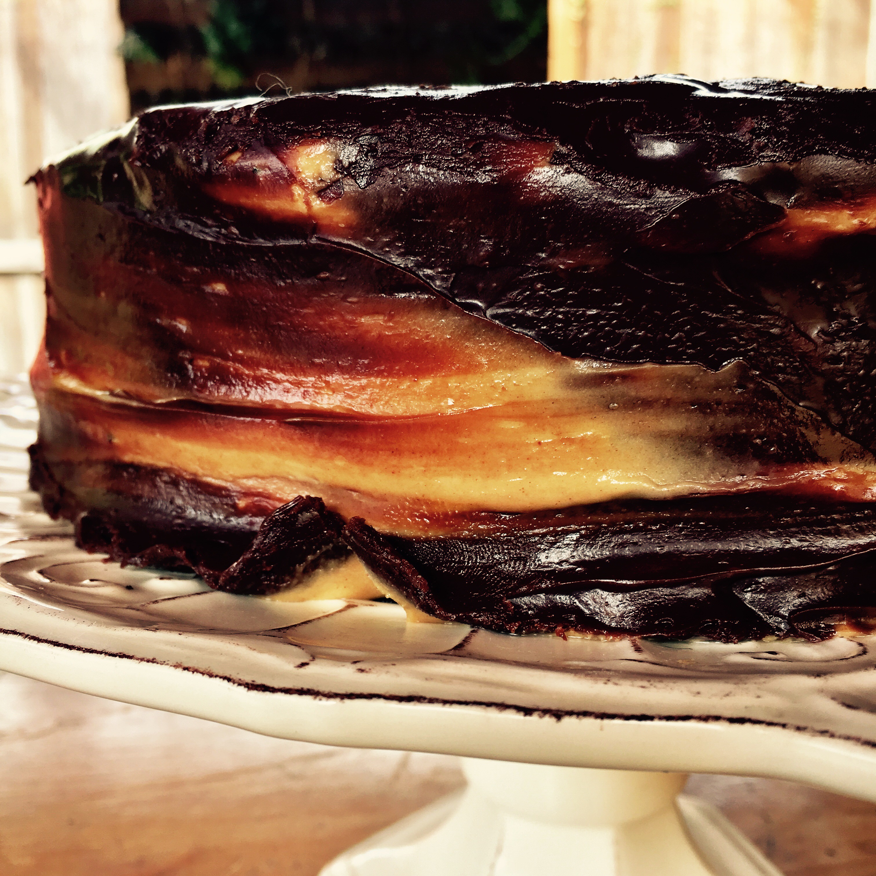 After cake is cooled, make ganache and frosting.