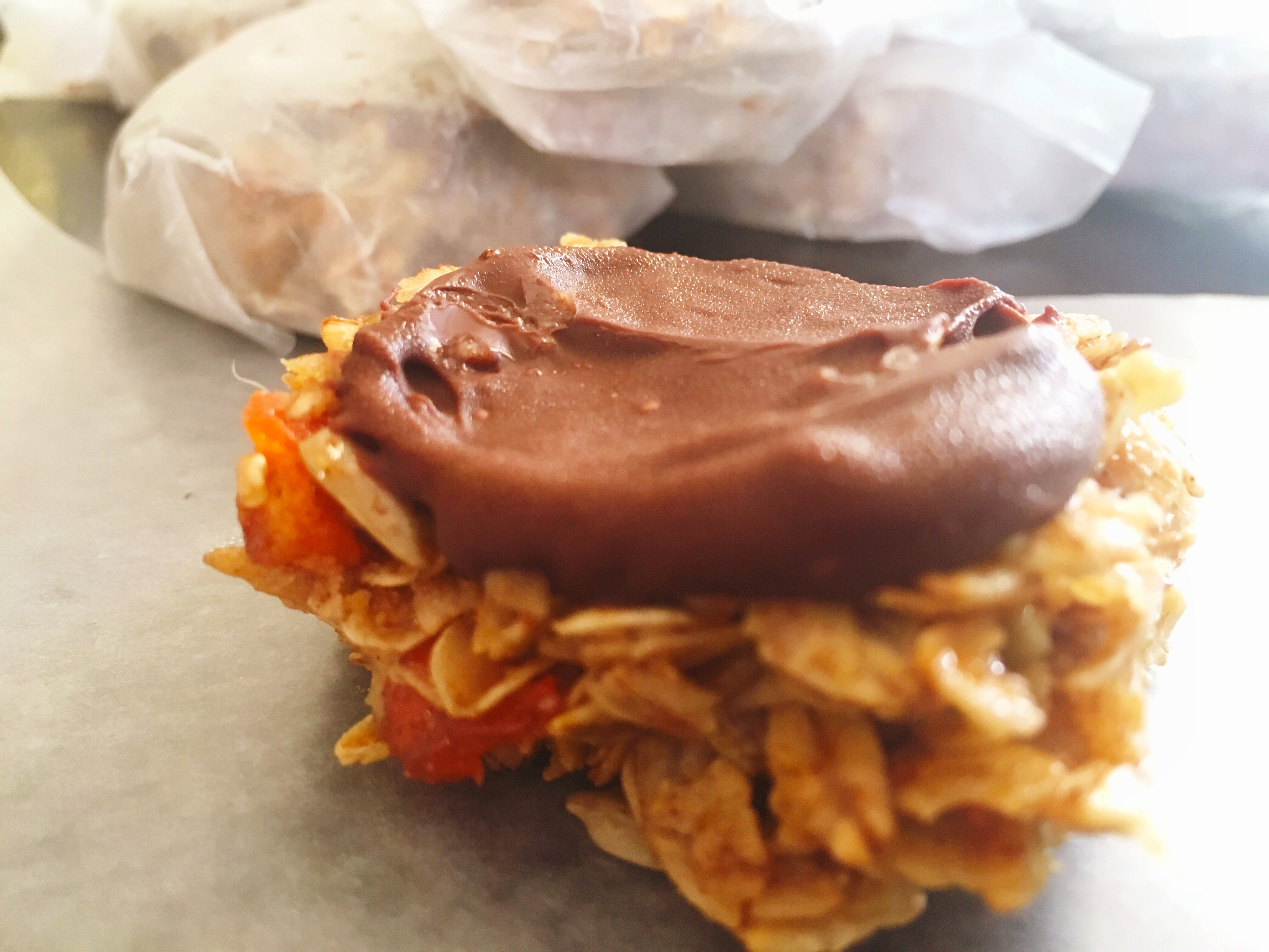 Turn them out of the pan onto a cutting board. Peel the parchment or foil away. Slice down the middle and then cut each half into 6 bars. Lay the bars on a clean piece of parchment or foil. Melt the chocolate in a small saucepan over low heat. Use a spoon to drizzle the chocolate over the sliced bars. Let it set up and ENJOY!