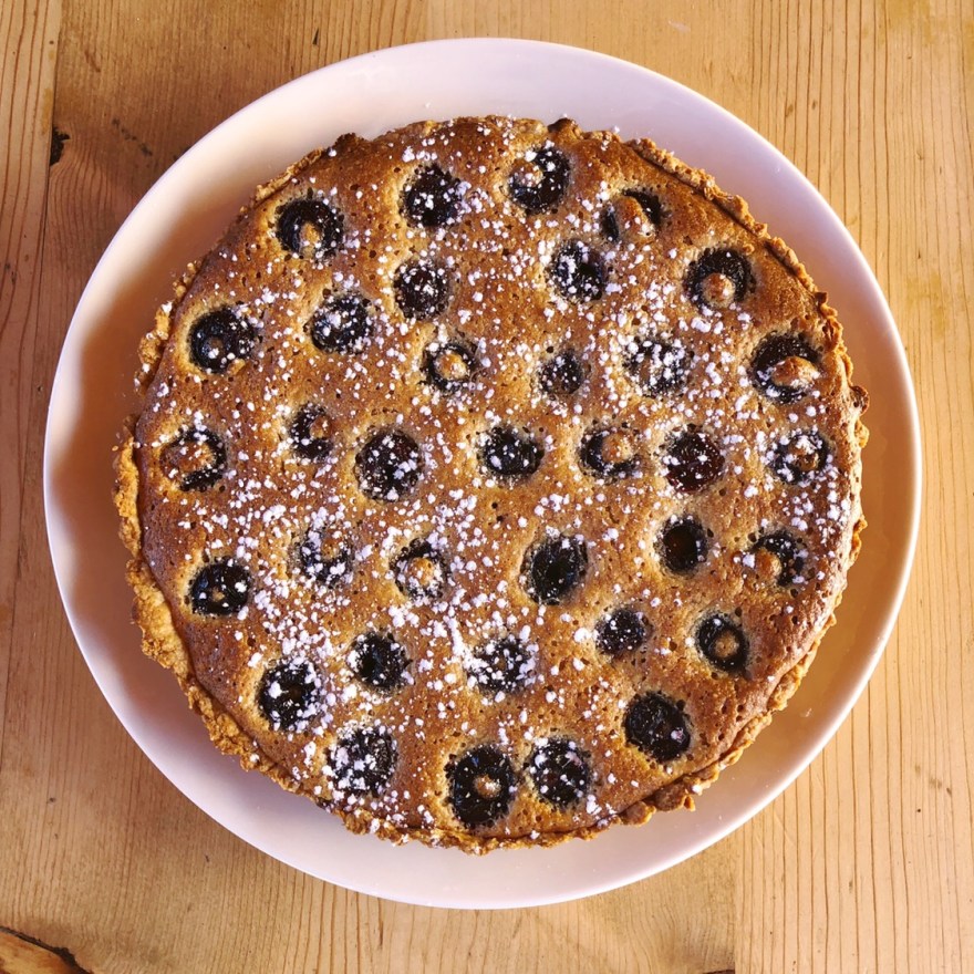 Pour almond batter into prebaked shell and smooth with a spatula. Press cherries into batter in a single layer. Lower oven temperature to 375 degrees and bake until golden, 30 to 40 minutes. (An inserted skewer should come out clean.) Cool on a rack and remove outer rim of tart pan. Place tart on a serving dish and dust with confectioners’ sugar.