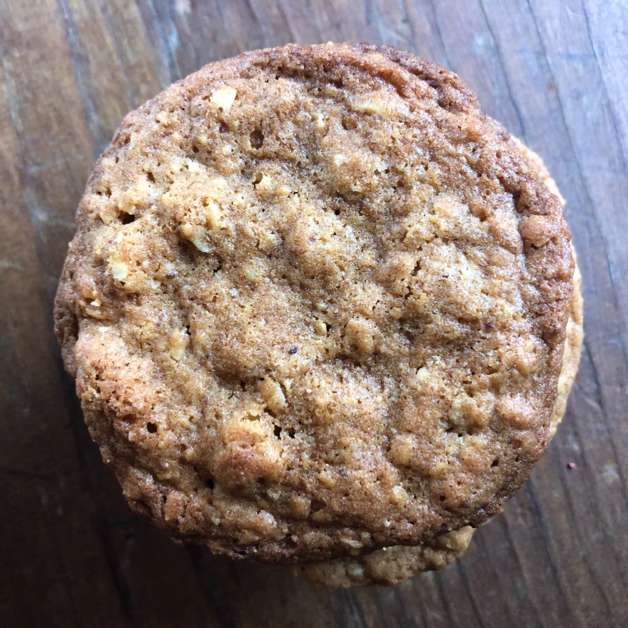 Preheat oven to 400 degrees F. Mix butter, sugars, vanilla. and eggs thoroughly until light and fluffy. Add cinnamon, then mix in nuts and almond butter. Add the dry ingredients and mix well. Stir in rolled oats. Use a small ice cream scoop to form each cookie. Press down halfway with a fork and bake for 10-12 minutes. They should be a golden color.