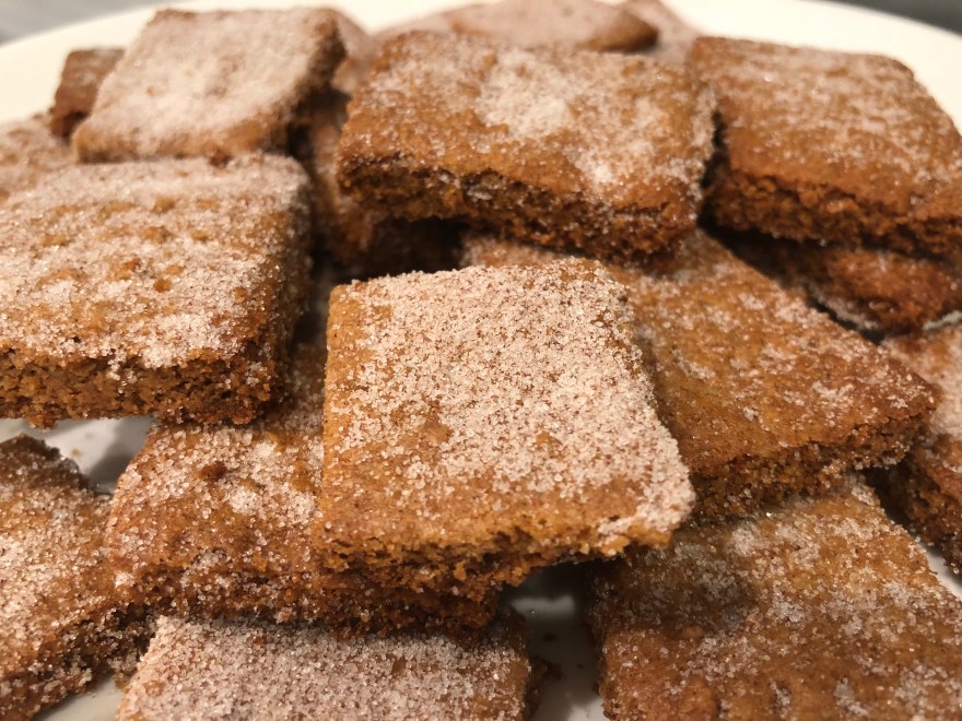 Bake the crackers in the middle of the oven until the outer edges just start to darken, about 25 to 30 minutes. The crackers themselves won’t color much. When you take them out, the dough will still feel a bit soft – that’s what you want.